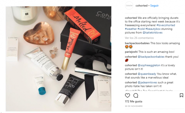 El precio es mayor que el de las suscripciones a las que estamos acostumbradas, pero merece la pena por lo que viene dentro de la cajita. Os dejo alguna foto de las últimas cohorted beauty boxes, para que os hagais una idea de lo que viene dentro.
